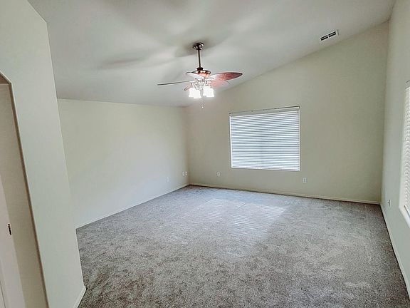 Stunning corner lot home with community pool features split floor plan, vaulted ceilings, kitchen island, pantry, tile flooring, new carpeting in bedrooms, walk-in closets, covered patio, landscaped backyard, and three-car tandem garage. Appliances included. Convenient location near major highways, shopping, dining, and entertainment. 12 Month Lease NO cats One dog under 40 pounds OK