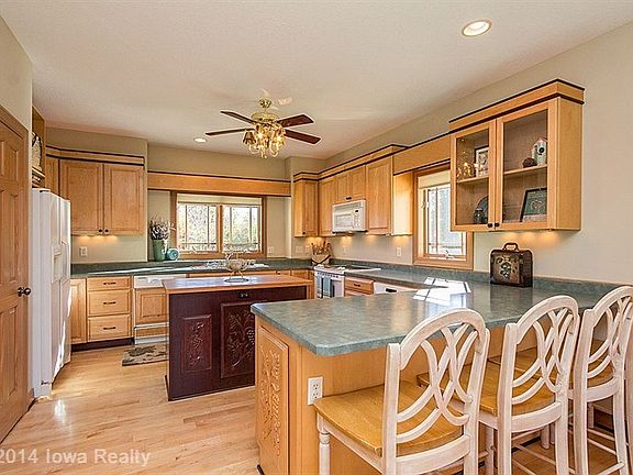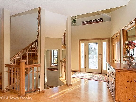 Custom built 2 story home has 5 bedroom, 3 1/2 bath, large kitchen with center island and 2 ovens, 3 season porch, 2 fireplaces (double sided fireplace in the master bedroom/bath) and an oversized 3C att garage. This open floor plan is great for entertaining & was designed to enjoy the outdoors with an impressive vaulted great room with a wood burning fireplace with gas starter and large windows from floor to ceiling. The kitchen w/pantry features maple cabinets & flooring throughout with a custom maple staircase. Lots of extra storage throughout each level. Recent updates include new roof, gutters, deck and refinished hardwood floors. This beautiful home sits on just over 1.6 acres with public land in front and behind the property and is located on the Johnston school bus route. Close to Jester Park, Saylorville Lake, walking trails, golf, horseback riding.