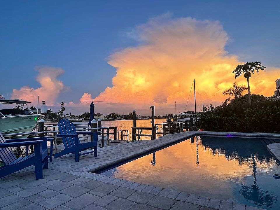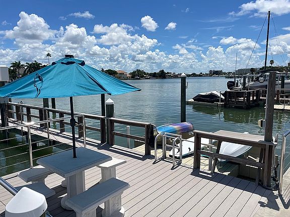 TURNKEY WATERFRONT HOME WITH IN-LAW SUITE, 2017 SEAWALL, DOCK & LIFT PLUS 1 WET SLIP - Boaters' and beach lovers' paradise, inspired by Greek Santorini and Miami Art District with Old Florida flavor - This recently renovated and updated home checks all the boxes: In walking distance to the beach, shops and restaurants, the main living unit with 2 bedrooms and one bathroom has exclusive access to the water. The In-Law Suite with also two bedrooms and one bathroom comes in handy in many ways well beyond providing a place for family. As a rental e.g. it could greatly contribute to paying your mortgage or offset other expenses. Both units have their own laundry rooms and plenty of storage. Deep water allows for sailboats and 5-6 cars can park on property. Newer windows and a 2016 roof. Call today for a private showing.