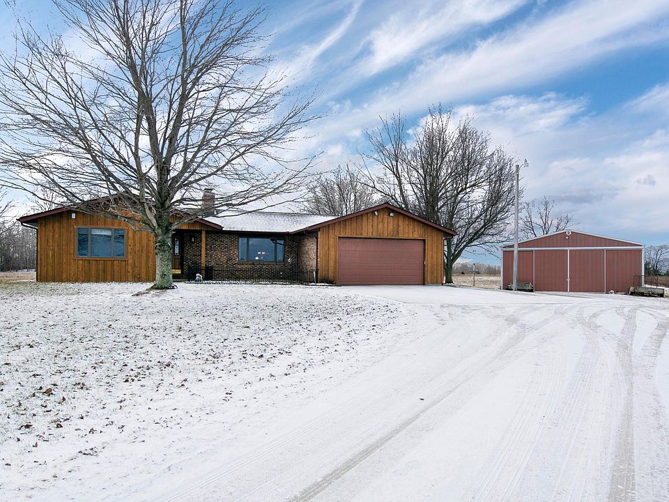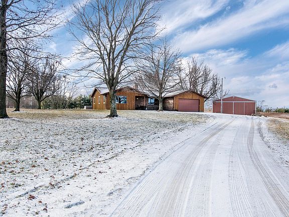 Pictures do not do this home justice! A Must See! Gorgeous & nicely updated, over 2600 sq ft 4 BR, 2 1/2 BA ranch w/enormous full walk-up basement (ready to be finished into teen/in-law suite) on 10.85 beautiful country acres (Currently CAUV). Cozy living room w/sun drenching picture window w/gorgeous views, a floor-ceiling brick fireplace & custom built-ins. Spectacular country kitchen! Custom maple cabinets, center island, granite counter-tops, all stainless appliances & pantry. Huge formal dining area & a separate family room, all w/new engineered cherry floors w/hand-scraped finish. Enormous 3 season room, concrete patio w/hot tub & more. 36 x 40 outbuilding w/12' ceilings, 17' wide doors, concrete floors w/drains, water, electricity & more. Tons of updates incl. roof & HVAC system.