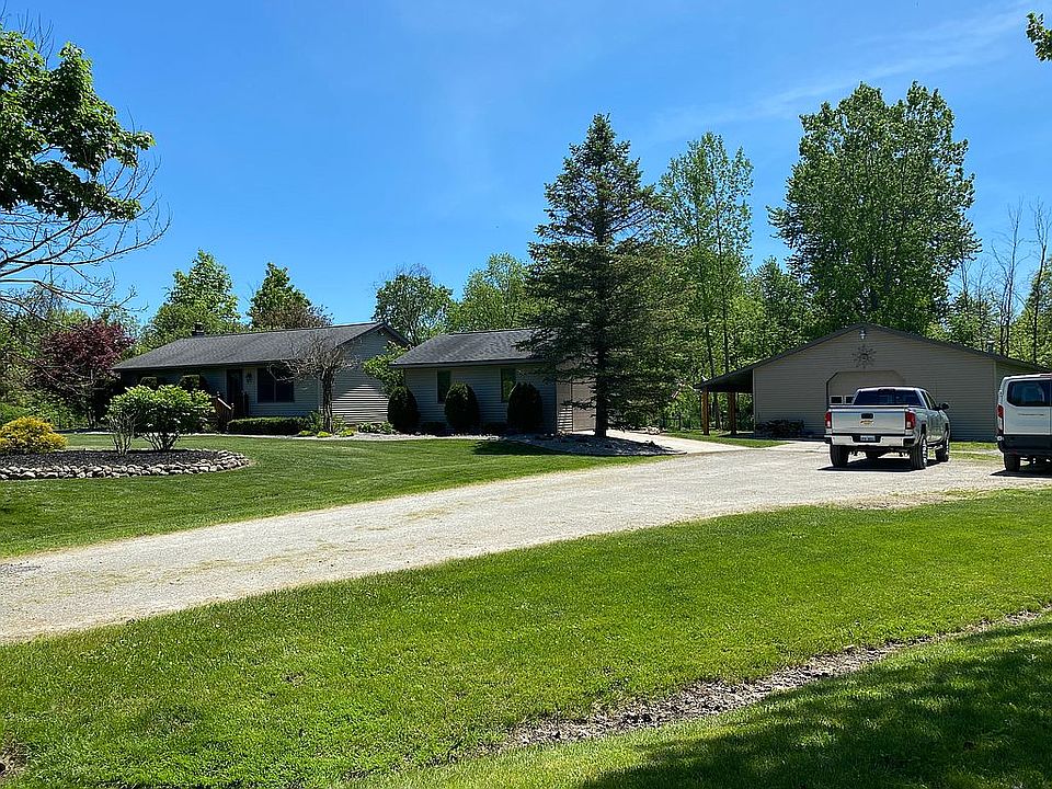 Must see secluded custom stick built home. This quaint ranch offers 1008 sq ft living area with full block basement ,wood and propane forced air heat with central air. Custom cabinetry through out the house Mohawk luxury vinyl flooring, ceramic tile and more. Step out onto the large covered porch and deck leading to a peaceful well landscaped yard. Plenty of bird watching and scores of wildlife in your very own backyard sanctuary. Private covered trail leading to a deer and turkey food plot. Your pets are kept safe in the yard with a 60" galvanized non step horse fence with cedar post with added kennels. Raise your flock in the covered and fenced bird pen. The 18x22 detached garage is fully insulated and finished with floor drain. The 38x64 pole barn is also fully insulated with wood burning furnace and propane heater. The barn also comes with a rustic home office, large air compressor, 9,000lb car lift, exhaust fan and plenty of room for a work shop. Very nice property that won't disappoint. Contact Greg @ 810-357-2069 call or text.