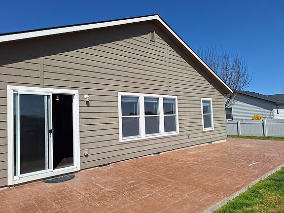 Bedrooms are getting new carpet now and whole interior is getting fresh. More pictures coming soon. Kitchen, living room, dining, and hallways are engineered hardwood floors. Kitchen boasts granite countertops. No backyard neighbors. Stamped concrete patio runs the width of the house for LOTS of outdoor entertaining. Garage has a man door to the back yard. Tenant will have access to neighborhood pool and clubhouse. Tenant is responsible for all utilities and maintenance of landscaping including sprinkler system.