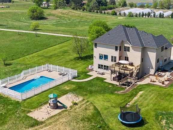Welcome to your own private oasis on 7.5 acres of diverse landscape. The drive in offers a stunning view of this incredible estate. The front porch, pristine landscaping & entryway welcome you to this impeccable, contractor-maintained property. You'll fall in love with the amazing amenities: 5 spacious bedrooms on one level, 4 bathrooms, gourmet kitchen, mud/laundry room, attached 2-car garage with epoxy floor, tons of storage & multiple living areas throughout. The walkout lower level offers additional expansion flex space. Exquisitely designed outdoor living spaces: a large deck overlooking multiple resort like amenities