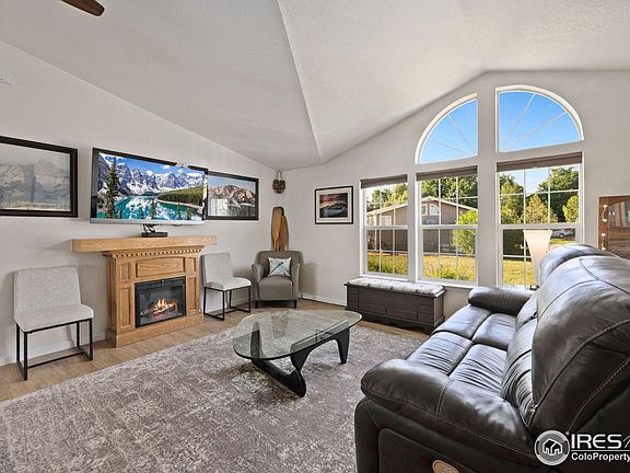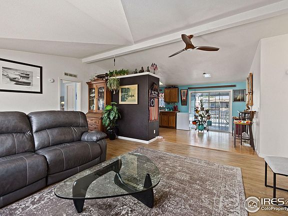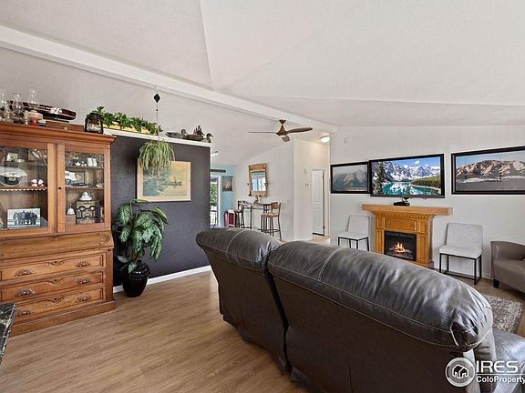 A great day to buy this updated 3 bed, 2 bath home with a 2-car garage, fenced backyard, an abundance of natural light throughout & an open, spacious layout. ALL ages community, PET friendly. $961/month LOT RENT, exterior water metered/billed to homeowner by City of Longmont. Longview offers a clubhouse, pool, playground, walking paths, & a catch and release pond. Home has NEW laminate floors, roof, furnace, exterior paint, garage door, & skylights, updated lighting/fixtures. Inviting living room has soaring vaulted ceilings & electric fireplace. Kitchen has a pantry, island, & all appliances stay, washer & dryer, too! Primary bedroom privately tucked away from other bedrooms & primary bath has a stall shower & separate soaking tub. Step out from dining area onto the updated, covered back deck to relax & enjoy the lush, fenced yard with flowers and a Chitalpa tree. Quiet and serene, this home sits on a larger lot with a grassy open area in front. A/C, garage door opener, & storage shed round out this cute and perfectly functional home right near shopping, dining, medical, and I-25.