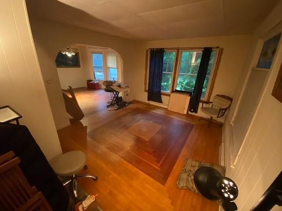 This home is ideal for renovation enthusiasts looking to restore a historic home situated on a spacious lot for added privacy. The Douglas fir hardwood floors are ready to be refurbished, and two of the upper bedroom floors have already been refinished, showcasing the home's potential. A brand new laminate floor has been installed in the kitchen, and there is maple flooring under the old flooring in the kitchen. Picture converting the upper level into a cozy living area, tranquil retreat, or creative workspace. With a 200-amp electrical panel and a sub-panel for the garage, you'll have all the power you need for any project. The extra-large basement, complete with stairs leading outside, provides ample space for storage or a workshop. The possibilities are endless! This home is conveniently located near shopping, restaurants, Dahl and Paradise Park, walking/biking trails, and Chisago Lake, which connects to South Lindstrom Lake.