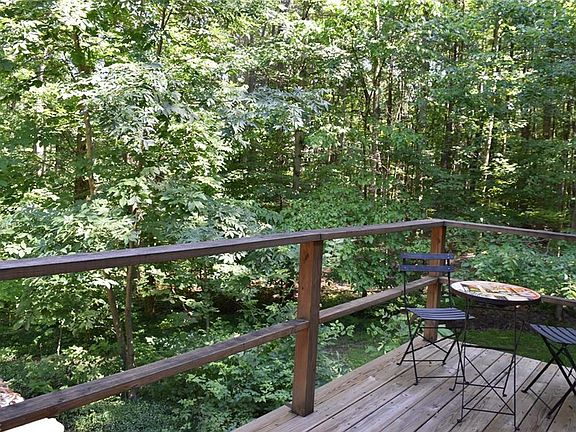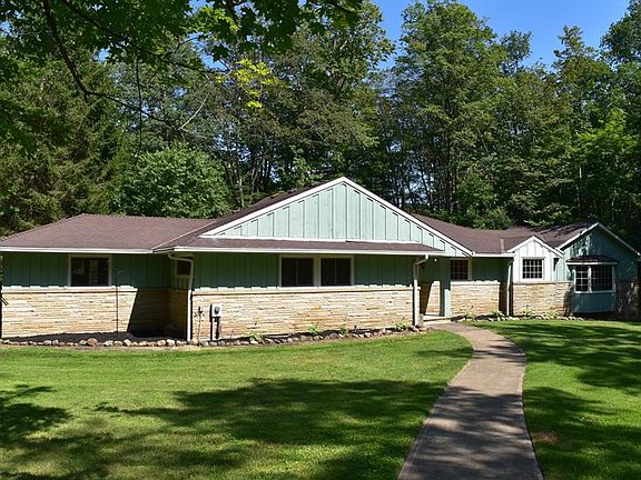 SECLUDED AND TUCKED AWAY ON 10 WOODED ACRES! Retreat to the country to this well-built 4 Bedroom & 3 Full Bath Ranch sets back over 900 ft off the road and among mature trees. Great living space with beautiful hardwood floors and breathtaking views of nature out every window. The warm & inviting Family Room has tongue and groove hickory paneled walls & sandstone wood burning fireplace. Large Great Room/Dining Room addition has vaulted beamed ceiling, bay window and floor-to-ceiling windows includes large slider to deck. Eat-in Kitchen with ceramic floors & all appliances stay. Master Bedroom has double closets, a large bay window and private bath. 4th Bedroom has a private entrance, great for guests. Full Basement with finished Rec Room and second wood burning fireplace, great storage space and walk-out to lower backyard patio. 3-car detached garage & storage shed. Enjoy hunting, hiking trails, ATVs or outdoor sports on these incredible rolling acres with creek. 1-yr home warranty. Berkshire Schools.