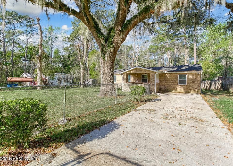 Great opportunity to live in the North Jacksonville area, close to everything, but in a quiet, peaceful setting. Home is located on over half an acre and has a fully fenced yard. This beautiful brick home features an open floor plan, split bedrooms, and solid surface flooring throughout. Has a separate laundry room with washer dryer hookup. Property is on a well, saving you money with no water bill as an added bonus! No HOA fees either! This home has been very well kept. Roof is just 2 year old! See 4pt inspection report dated 1/13/22 under documents. Termite bond transferable at buyer's expense. Zoned RR Rural Residential.