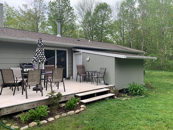 Minutes from Sister Bay and Ellison Bay. Located in a quiet wooded setting with a nice front porch and back yard and deck to enjoy the wooded beauty. The home offers 3 bedrooms, 2 baths, nice laundry-mud room right off the garage, a two sided wood burning fireplace plus a wood burning stove that heats the home. It is a pretty open concept floor plan. Much of this home has been redone/update including exterior painting, new propane furnace, A/C and whole house humidifier, new living room ceiling w/ new insulation, wiring and fixtures, appliances, baths remodeled and more. List attached in documents. This is a great family home and walking distance to the Mink River and Rowleys Bay resort. Outbuilding is a woodshed attached to home.