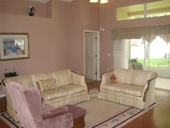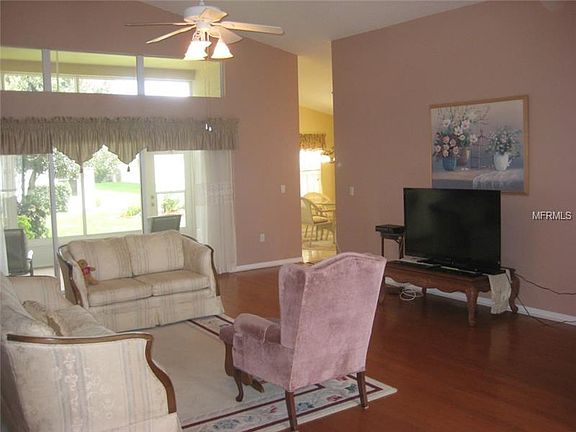 2/2 with Den Sought out Westbury model in the 55+ gated community of Wellington at Seven Hills. Property has beautiful hardwood floors in large 20 x 20 living room with lovely view of the lanai and mature landscaping. Berber carpet in both of the bedrooms. Master bedroom has large walk in closet, ceiling fan and Master Bath with double sinks and spacious walk in shower. Full Guest bath. Tiled den with wallpaper. Large open kitchen with breakfast bar and pendant lights. Corian counters and pull outs in cabinets. Eat in kitchen has chandelier and lovely view into the lanai and back yard. Laundry room with cabinets. Garage has laundry tub and storage