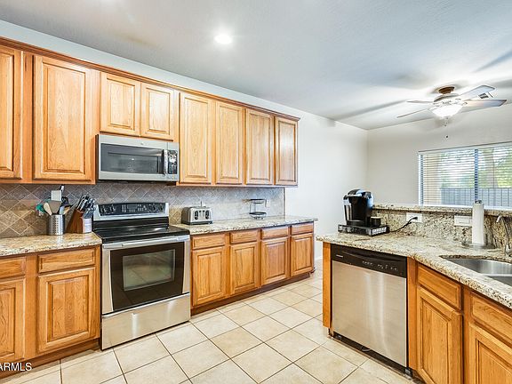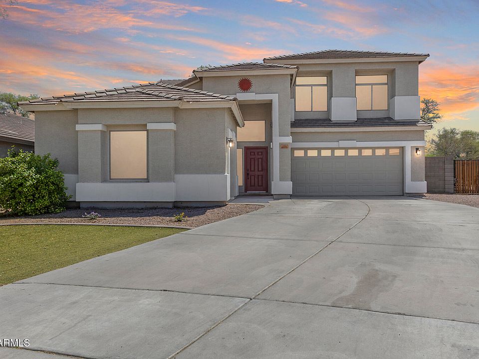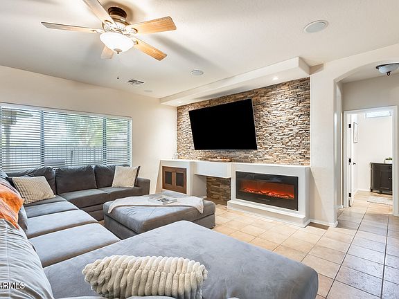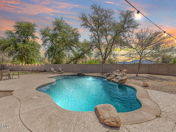Set on a sprawling 11,846 sqft lot with stunning mountain views, this charming 4-bed, 3-bath, 2-story home offers 2,791 sqft of living space. Featuring a cozy yet spacious layout, the home includes a den, family room, and great room. The upstairs primary suite boasts a full bath. Plush carpet and tile flooring complement the home's warm atmosphere, while the kitchen features granite countertops, a walk-in pantry, a center island, breakfast bar, and space for formal dining. Outside, the balcony and covered patio overlook a huge, low-maintenance yard with synthetic grass and pavers, plus a private fenced pool for your enjoyment. Additional features include a 3-car garage, an RV gate, and access to community amenities such as a children's playground and pool!