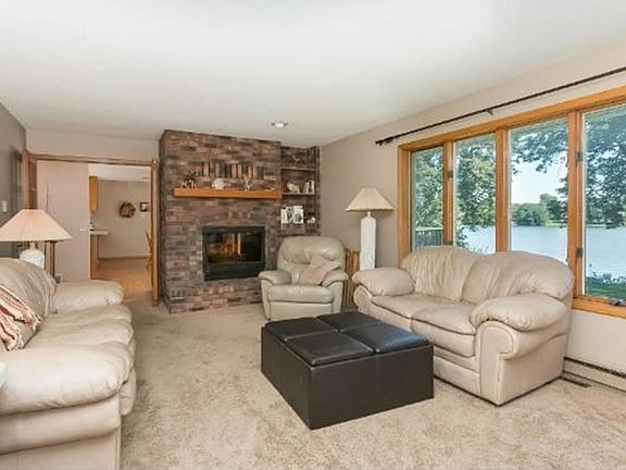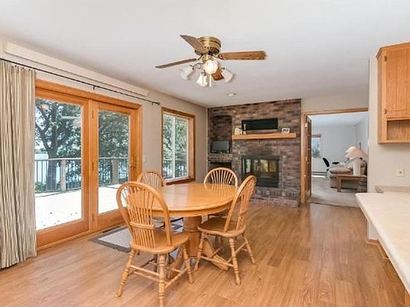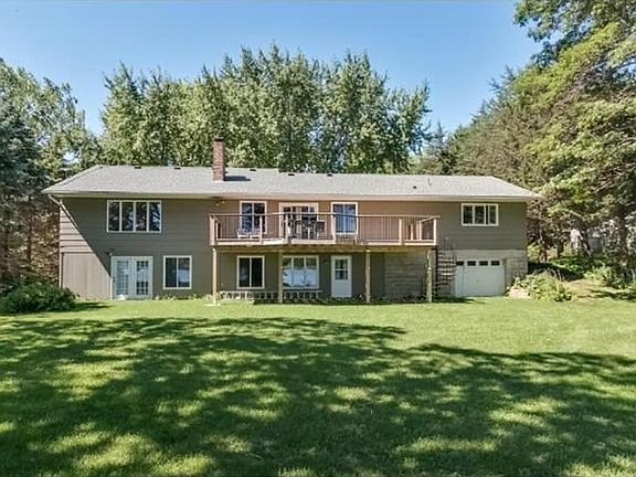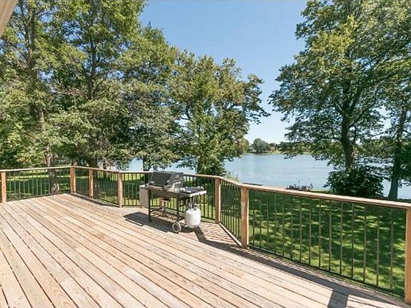 Year-round lake living with amazing views/sandy beach/fishing/boating! Updated+well-maintained! Open kitchen and dining open to huge new deck overlooking backyard and lake-kitchen w/lots of cabs/huge serving breakfast bar-peninsula/walk-in pantry! 2-sided fireplace between dining and living rooms, French doors to living room! Nice sized master suite in LL with walk-in closet and remodeled 3/4 bath, 2 more bedrooms on ML. 2 garage up+1+ below w/door to lake! Newer septic, roof, lots of storage!
