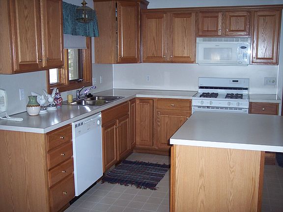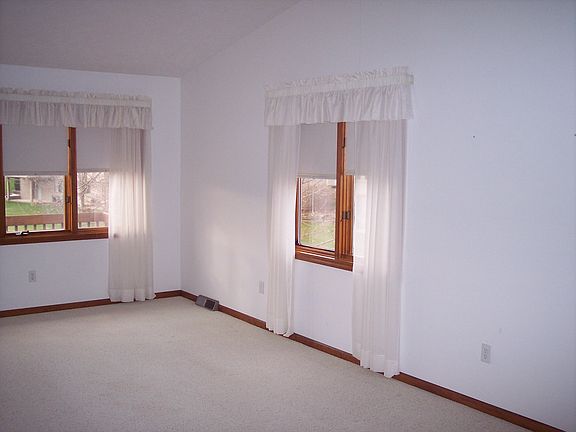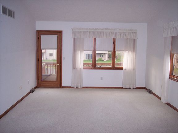 This Amber Ridge condo on the pond is an end unit. It features an open concept with a dining room and a large living room at one end. This leads to the rear deck overlooking the pond. There is a large bathroom and closet attached to the master bedroom. Open the windows and you can hear the fountain in the pond. One more bedroom is upstairs formerly used as a TV room. Another bathroom is between that bedroom and the stairs. Includes appliances, washer, and dryer. Garage is painted with paneling. Dues ($150/mon.) include trash, water, snow removal, and lawn care. It has been kept very clean by a widow living there since it was built. Basement is ready to be finished. The condo is smoke and pet free. Move in ready. Closing costs are $3,000 to be spilt 50/50. We are ready to make a deal. Please email or call for a visit.