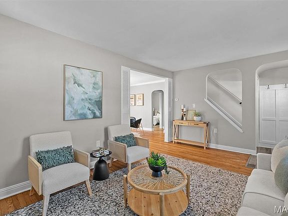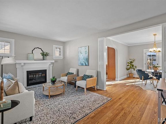 Welcome to this updated Des Peres 1.5-story in an amazing walkable location! You'll be just steps from restaurants and shops, and moments from highways, Des Peres Park, West County mall, and Kirkwood Schools! A stately brick exterior greets you and leads you inside to the bright living room. You'll love the cozy gas fireplace and charming details that continue throughout: archways, crown molding, and hardwood floors. The dining room features a stylish chandelier and French doors open to the deck. The kitchen has quartz counters, new flooring, stainless steel appliances, open shelving, brushed gold fixtures, and a farmhouse sink. Two spacious bedrooms and an updated full bath w/tile surround tub and wainscoting complete the main level. Upstairs are 3rd & 4th bedrooms, with a large full bath. The walk-out finished LL adds a family room with adorable reading nook & office/sleeping area that opens to the patio. Fenced backyard w/shed, deck, landscaping, and parking pad. Don't miss out!