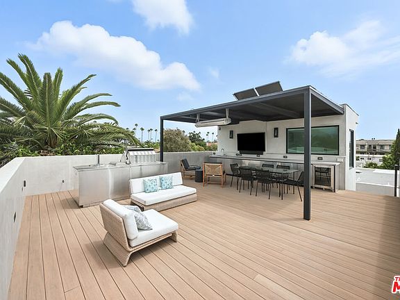 Stunning new construction home in the heart of Santa Monica. Available for immediate move-in. Designed by acclaimed architect Dennis Gibbens, this brand-new 4 bedroom, 4.5 bath residence combines striking modern architecture with functionality. Fully gated with a secure entry and private direct-access garage, the home offers complete privacy while sitting just moments from the best of Santa Monica. The showpiece of the property is the spectacular 900 SF private rooftop deck, featuring panoramic views and every amenity for entertaining: a full outdoor kitchen with built-in BBQ, beverage fridge, beer tap, gas heater, outdoor dining and multiple lounge areas. Inside, soaring ceilings and walls of glass create a bright, open floor plan. The custom gourmet kitchen boasts top-of-the-line JennAir appliances, an oversized island with seating and abundant storage. The primary suite is a true retreat with a spa-like bath featuring an oversized shower and heated floors. A separate lower-level includes a spacious family room and two additional bedroom suites. This smart home is outfitted with Crestron automation, exterior security cameras, whole-house audio, electronic window shades, three Samsung Frame TVs and included high-speed internet service. Additional features include a private elevator to all levels, fast electric car charging and a cutting-edge rotating garage carousel for forward-street exit. A rare architectural offering with the very latest home automation amenities.