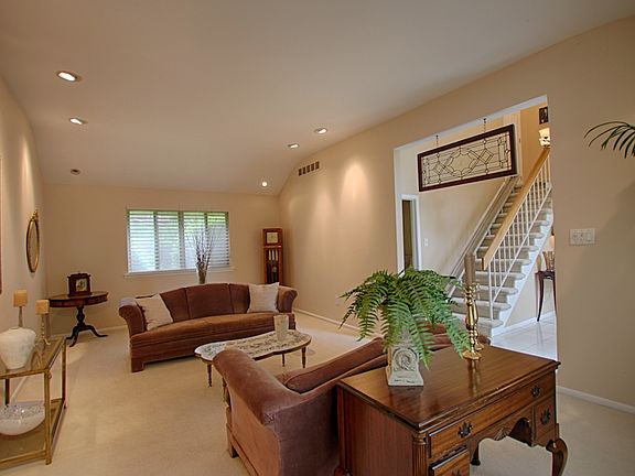 Great home in the desirable neighborhood of Ridings of Fox Run with lovely curb appeal and lush landscaping. Home boasts: Neutral but decorative wall colors. Two story foyer. Large living room with vaulted ceiling and recessed lighting. Separate dining room with french door that leads to the kitchen for easy entertaining.The kitchen is also centrally located to the family room for an open concept feel and flow. The family room has a brick fireplace and opens to the back yard. The first floor office is perfect for anyone who works from home and could be used as a guest bedroom for overnight guests. Upstairs, the Master Suite is expansive with walk in closet,dressing area and master bath. Upstairs bath has been renovated with double sinks,newer vanity, jacuzzi tub and tile. 2 additional large bedrooms with ample closet space complete the 2nd floor. Other amenities include:First floor laundry room. Finished basement with new carpet. Irrigation system. Beautiful private fenced in back yard. 6 panel doors throughout. 2 car garage with extra storage area. New driveway and walk way. This wonderful home is close to everything! Shopping, Restaurants, and minutes from major highways. Please note: Owners have oil heat (tank in basement) and have always been very satisfied with this form of heat, and the system has always been maintained and updated. Sellers have researched converting from oil to gas and are willing to assist in conversion monetarily if the new owners would like to do so.