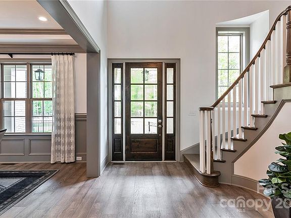 Gorgeous model home for sale, located walking distance to amenities. 1st-floor Premier Suite has a sitting room plus luxurious bathroom w/ quartz counters, painted cabs, soaking tub and spa-like shower with rain head; walk-in closets have built-in closet systems. Kitchen features Bleu base cabs w/ grey 42" uppers, UC lighting, farm sink, backsplash, quartz counters, & GE Profile slate appliances including a French door fridge & gas cooktop. Breakfast room has built-in cabs plus Monogram wine fridge. Built-ins are in the Dining room, laundry, Family room, Study, Loft area, Rec room and Mudroom. Nice sized rear covered porch overlooks mature trees. Unique mid-level Study has a vaulted ceiling & built-ins. Laundry room includes washer & dryer. Bonus room has decorate beams. Outside you can access unfinished walk-in storage room from the side yard. Secondary baths have quartz counters, grey and Bleu painted cabinets, chrome fixtures, and tiled floors. 7" grey stained white oak flooring.