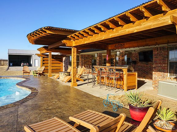 - Exterior Features: Water Feature, Outdoor Kitchen, Workshop