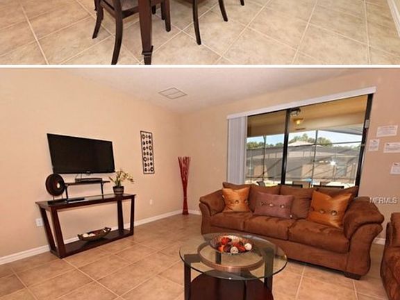 WOW This beautifully furnished 5 bed home will not last long, gated community only 20 minutes from all the theme parks. 2 master bedrooms one downstairs and one upstairs. Kitchen has all granite worktops, with stainless steel appliances. Home is very open plan. Great for a primary residence or vacation home. Easy to show so call today and come and see. Owner pay for HOA which include landscaping and exterminatiin, Renter pay for utilities water, cable service and electricity.