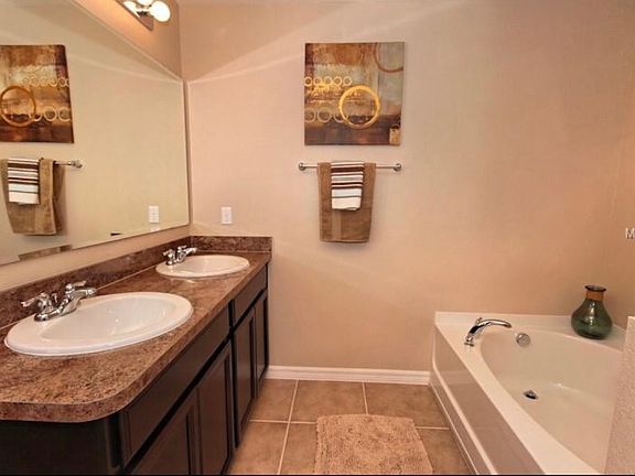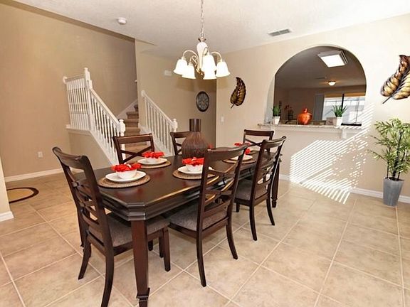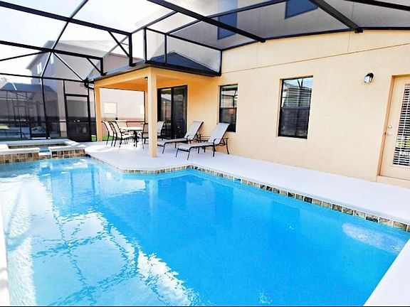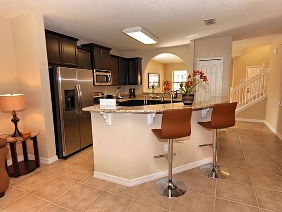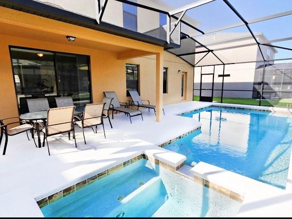 WOW This beautifully furnished 6 bed home will not last long, gated community o less than 15 minutes from all the theme parks. 2 master bedrooms one downstairs and one upstairs. Kitchen has all granite worktops, with stainless steel appliances. Pool/Jacuzzy huge house ready for use as a primary residence or vacation home. Easy to show so call today and come and see.