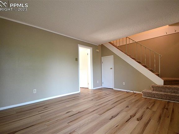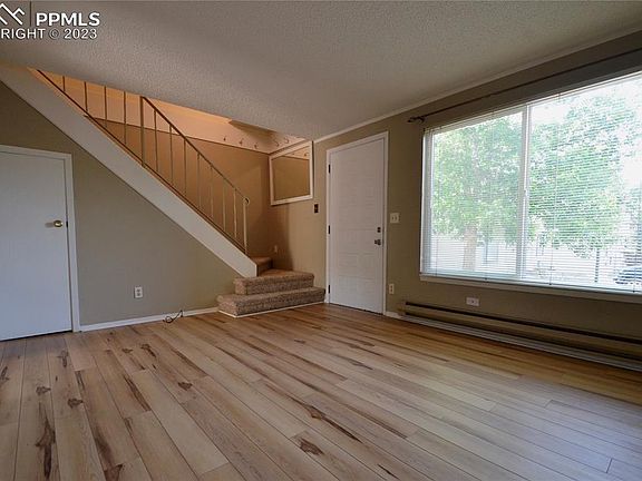 Fantastic location and move in ready! Pride of ownership shows in this one! New storm door, all new windows, sliding door, and main level flooring. Newer paint. New kitchen faucet. Stainless appliances and the washer/ dryer stay. Hot water heater is one year old. 2 bedrooms upstairs with front range views. Private and fenced back yard with a big 5'x10' shed. Easy access to I-25, Garden of the Gods and exploring trails. This one is nice!