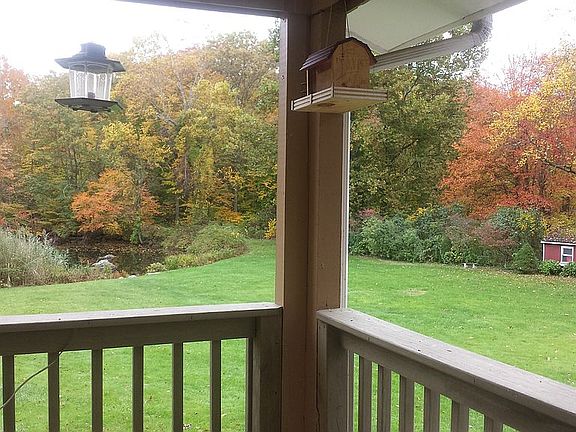 Nature lovers retreat. Over sized wood deck sits high and overlooks two manicured acres complete with natural pond and fountain. Newly finished lower level has separate PRIVATE ENTRANCE, full bath/shower and working fireplace..perfect for in law apt or hOme office.