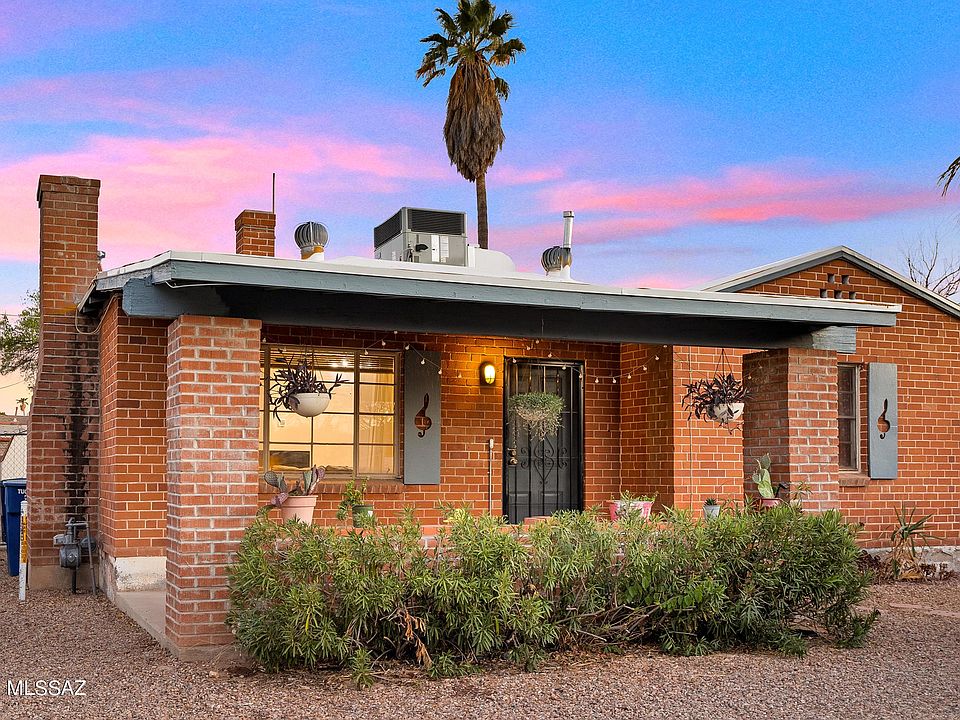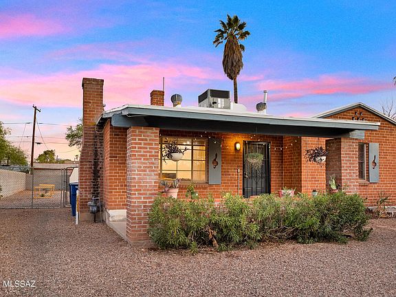 This classic 1943 brick bungalow is as charming as can be. Located near the University of Arizona and downtown Tucson, you're only a short bike ride or walk from the heart of the city. Truly turnkey, the appliances, AC, and water heater have all been recently upgraded. In addition, the large lot boasts native plants, a vegetable garden, built in barbecue, and space for pit fires on frosty nights. Or, move indoors and warm up next to the wood burning fireplace. Comfy as can be, but large enough for a small family, there is plenty of space for you and yours to thrive.