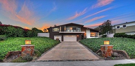 Spectacular views abound in this meticulous and immaculate estate perched high in Harbor View Hills on over 1/3 acre lot! Extra long driveway and large front patio were designed for large parties and dramatic curb appeal. Sophisticated slate entry leads to large living room with fireplace, formal dining room has walls of glass to capture stunning sunsets over the Pacific Ocean. Cozy family room off the kitchen is adorned with bookshelves and has sliding doors to the side yard patio, an intimate outdoor living area. Large addition over the garage could be another bedroom, is currently used as an office. Master bedroom provides a zen-like atmosphere with sliding doors to an enclosed patio, and a newly renovated bathroom resembling that of a spa resort. Enormous yard provides extreme privacy and peacefulness. Newer roof and windows, exterior painted last fall, and vinyl fe3ncing installed last year.