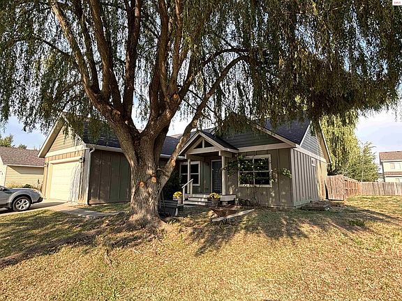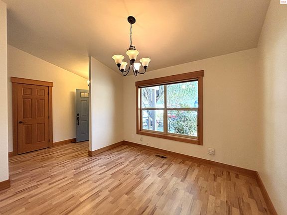 Custom built handsome single level home in city limits of NW Sandpoint. 3 Bed 2 bath with fir wood base trim, solid wood panel doors and wood trim around doors and windows. Comfortable flowing open floor plan with vaulted ceiling in kitchen, living and dining areas. Laminate and carpet flooring with tile in bathrooms. Primary bathroom is privately located with tile shower and soaking tub with tile surround. Stainless gas/electric range oven and dishwasher, plenty of cabinet space with an eating space with views to quaking aspen trees in the back yard. Large willow trees, one in front and one in back provide great privacy and summertime shade. Fully fenced back yard, 2 car attached garage, natural gas heat and central AC with heat pump. With Ting high speed internet to top it off, you are set to live the good life in Sandpoint!