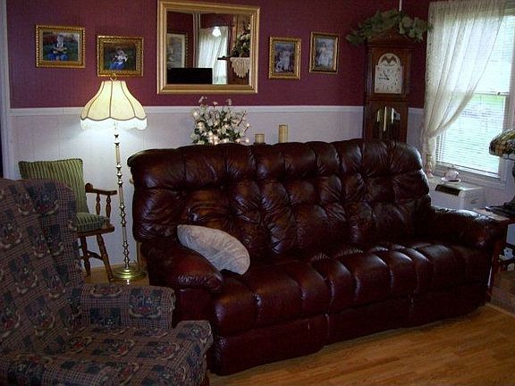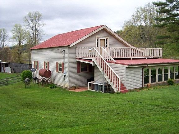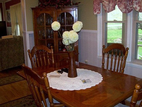 Charming setting for this farm house that has had been updated to make it a very comfortable & cozy home.Woodburning stove insert in the fireplace,hardwood floors upstairs, large bedrooms with setting area in both, outdoor entrance from an upstairs deck.Master Bed & Bath on main level,carpet, vinyl & wood floors on main level, great entertainment covered porch in the front of the house,small stream, outbuildings, 2 car open garage/carport,well maintained landscaping thru out the property.Installed a new heat pump 3/15/13.