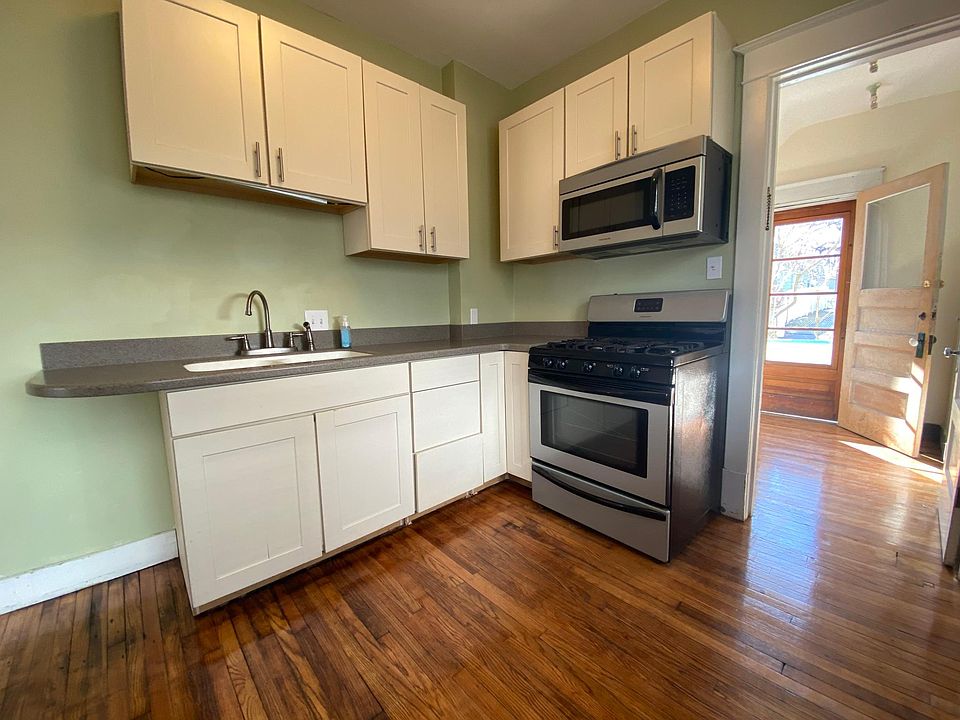 Just renovated and right across the street from the farmers market! This lower unit is available starting May 1 2021. Beautiful hardwood floors, landscaping, and new kitchen. Large bedroom with smaller second bedroom. Accessible laundry in basement NOT coin operated. Off street parking available for one vehicle with ample additional street parking available.