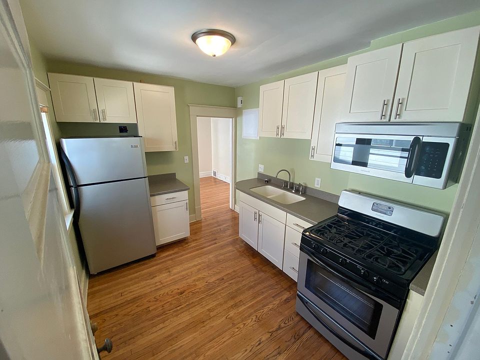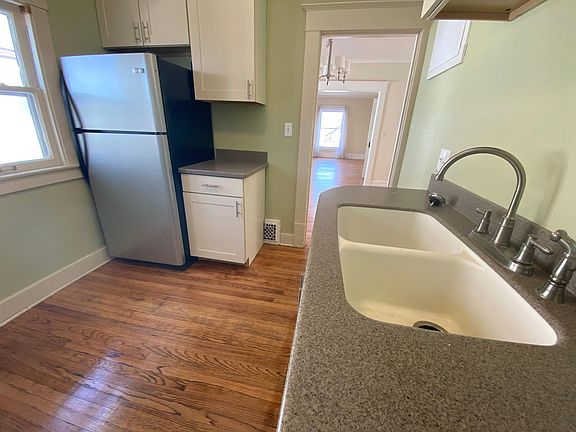 Just renovated and right across the street from the farmers market! This unit is available NOW. Beautiful hardwood floors, landscaping, and new kitchen. Large bedroom with smaller second bedroom. Accessible laundry in basement NOT coin operated. Off street parking available for one vehicle with ample additional street parking available. Owner pays for water and landscaping. Tenants pay for electric, gas and trash. Tenants must complete a background and credit check and show proof of income 3 times the rent. This property is not accepting section 8 at this time. Sorry no dogs allowed.