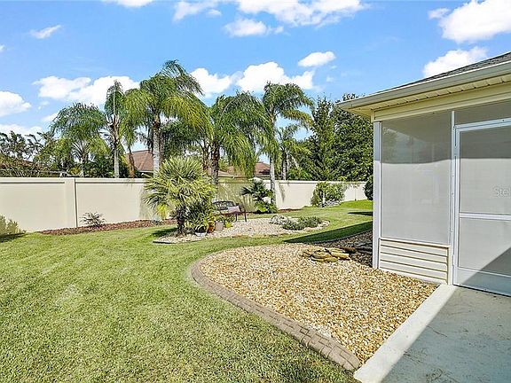 ROOM FOR LARGE POOL! 5 Minutes to Lake Sumter Landing! This 2/2 Austin Model has it all: PRIVATE LOT with Concrete Wall, Large Screened Lanai, Incredible Landscaping, Interior Upgrades, and CENTRALLY LOCATED in Sabal Chase one of The Villages most desirable neighborhoods. Create the Outdoor Paradise of your dreams: the Spacious Back Yard (approx. 37 feet deep) with Concrete Privacy Wall offers room for a Large 17x30 Pool and Hot Tub (See Pool Sketch in Photos). This is a NO CARPET Home: top-grade Laminate Wood Flooring in the bedrooms & living areas, and beautiful Slate Tile in the wet areas. VAULTED CEILINGS make the OPEN CONCEPT living/dining/kitchen areas feel very light and spacious. The property has tremendous Curb Appeal with PROFESSIONAL LANDSCAPING, Covered Entry with Leaded Glass Door, and Complete Rain Gutter System. Step inside to discover why the Austin is The Villages most popular 2-bedroom model: the open floor plan flows comfortably from Living to Dining and Kitchen, out onto the covered Lanai perfect for entertaining! The interior features Vaulted Ceilings, PLANTATION SHUTTERS, and Upgraded Light Fixtures throughout. The Kitchen has Neutral Colored SLATE TILE Flooring, a Breakfast Bar with room for 5-6 bar stools, Solid Wood Cabinets with Custom Lighting, a SOLAR TUBE, Upgraded STAINLESS Appliances, and GAS COOKING! The Spacious Master Suite features Laminate & Slate Flooring, a Walk-In Closet, Walk-In Shower, and Lanai Access via a sliding glass door. The 2nd Bedroom has Laminate Flooring, Upgraded Lighting, and an extra-deep Double Closet. Guest Bathroom with Slate Flooring, Vanity, and Shower/Tub Combo. EPOXY FLOOR and Attic Storage Access in the Garage. 20-Foot Screen-Enclosed Lanai with an additional Patio (great for grilling). Centrally located between 466 and 466A, close to Lake Sumter Landing Market Square and Brownwood Paddock Square, Cane Garden Country Club & Championship Golf Course, Mallory Hill Country Club & Championship Golf Course, Havana Golf & Country Club, Lake Miona and Canal Street Regional Recreation Centers, Colony Plaza, Pinellas Plaza, Shopping and Restaurants. PLEASE WATCH OUR VIDEO OF THIS BEAUTIFUL HOME!
