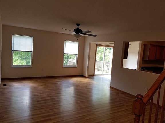 2 bedroom, 1 1/2 bath with a 2 car attached garage with openers. All kitchen appliances including dishwasher and lots of cabinet space. Deck off of dining room. Hard surface flooring in living room and family room with walk out basement and large storage area. New light fixtures throughout. Washer and dryer hook ups upstairs. Lawn maintenance included. Gas & Electric. Strict 2 car limit. 12 month lease