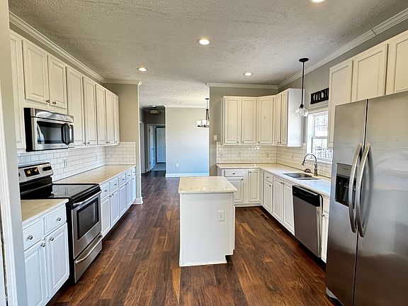 Now available for rent! This beautiful home features a large, open floor plan with rich flooring and abundant natural light throughout. The kitchen is a true standout, offering granite countertops, ample cabinet and counter space, stainless steel appliances, and a center island perfect for everyday living. The open layout flows seamlessly into the dining area, highlighted by large windows that brighten the space. A spacious secondary living area features a stunning stone fireplace, creating a warm and inviting setting for relaxing or entertaining. All bedrooms include closets and brand-new carpet. The primary suite offers his-and-her closets and a private bathroom with a soaking tubperfect for unwinding at the end of the day. Enjoy outdoor living on the two-tier deck, overlooking a fully fenced backyard ideal for entertaining or relaxing. Conveniently located near shopping, dining, schools, the base, and just seconds from Mike's Farm. This rental won't last longschedule your showing today!