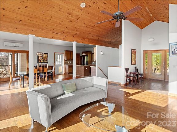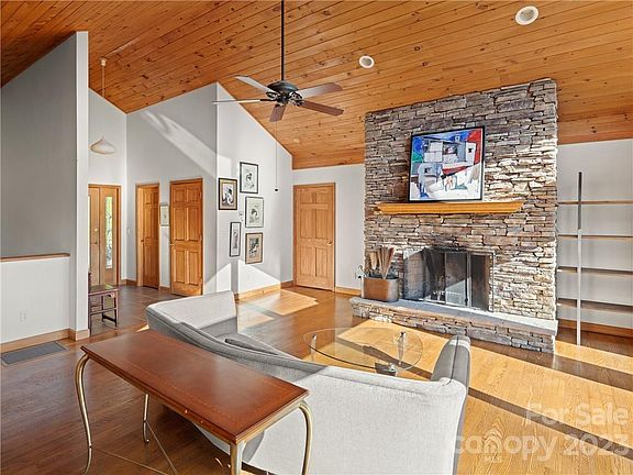 From two expansive decks, enjoy sweeping panoramic short and long range views that include many of our area's most famous mountain peaks. Serene views from almost every room - even garage and laundry room! This home has a contemporary design, an open floor plan, cathedral ceilings and is filled with natural light streaming in from large windows showcasing the view. There are two living rooms each with a beautiful stone fireplace. Dining areas inside and out to linger and take in the peacefulness of the setting. Conveniently situated between quaint Marshall and the eclectic college-town of Mars Hill so dining and coffee shops are only a 5 mile drive away, and 25 minutes from Asheville. Home being sold with extra pin so there are just over 19 acres (from tax records).