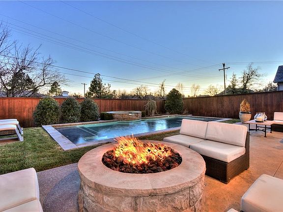 Gorgeous home built in Nichols Hills in 2009! Large open plan perfect for entertaining with two living and dining areas with beautiful hand-scraped wood floors throughout. Windows across the back highlight a fabulous outdoor space with heated pool, hot-tub with waterfall, fire-pit, and large patio. The kitchen is light and bright with a large island, walk-in pantry, double ovens, warming drawer, stainless steel appliances, and built-in china hutch. The master suite includes a sitting area and large master bath with double vanities, corner tub, glass shower, and walk-in closet. The oversized garage has epoxy flooring and an in-ground storm shelter. The flow from indoor to outdoor makes this home ideal for entertaining and the large lot and perfect location is an added bonus! Roof replaced 12/2016, New Exterior paint!