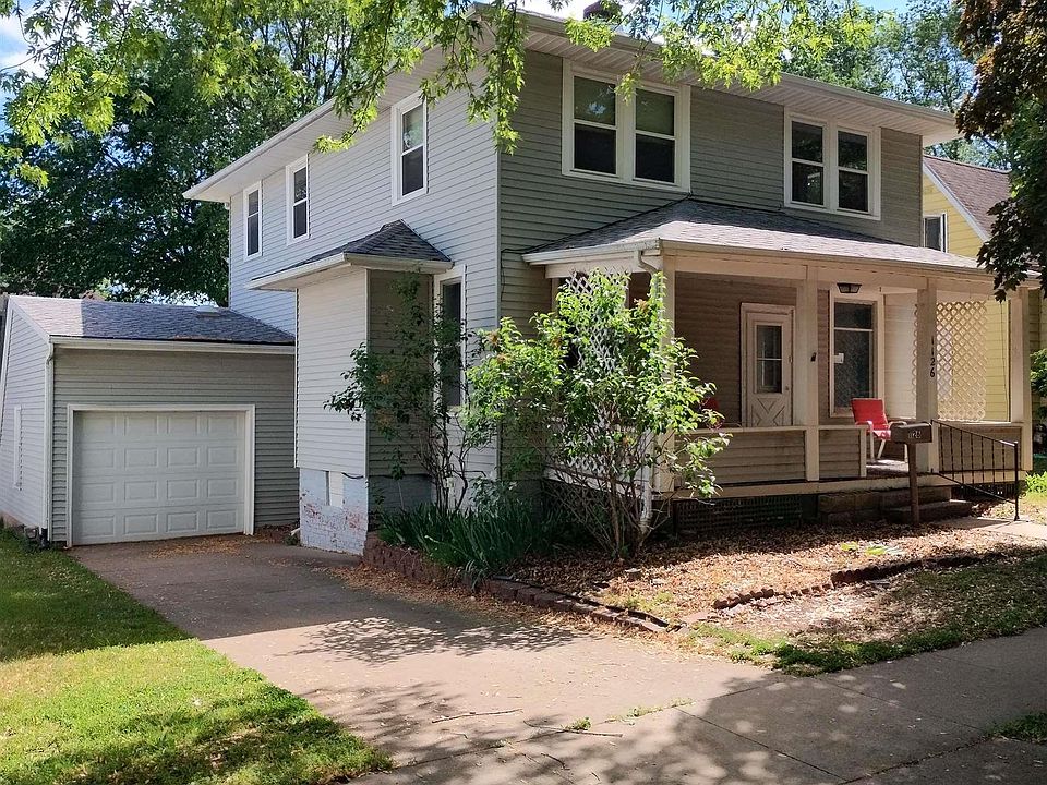 This house offers plenty of space, a wonderful backyard, and is conveniently located on the east side of town. It’s just waiting for your personal touches and updates to truly make it your home! The main and upper floors feature hardwood floors. You'll find a main floor bedroom, a half bath, and a laundry area off the kitchen. Upstairs, there are two additional bedrooms, a bonus sunroom, and a full bathroom. Some replacement windows have been added throughout the house. The owner also installed steel supports in the basement and buried downspout drains with gutter guards around the property.