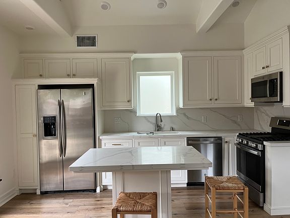 Light and bright, this beachy back cottage benefits from many windows, clean lines, and thoughtfully designed living spaces. From the private flagstone patio, pass through the glass front door into a great room made voluminous by the vaulted ceiling. In the kitchen area, luxury fixtures and finishes compliment the stainless steel appliances while the marble surfaces and clean white on white palate allow a seamless the transition from kitchen to living area. In the bedrooms, built in storage and sliding barn-style doors maximize living space while the stackable washer/dryer unit in the back hall closet maximize convenience.