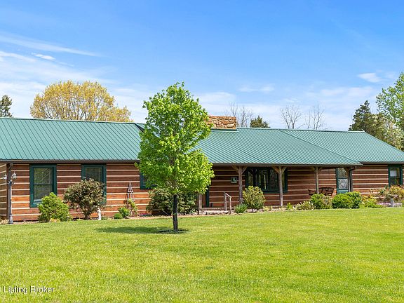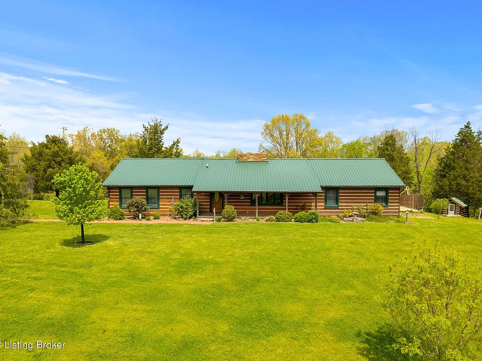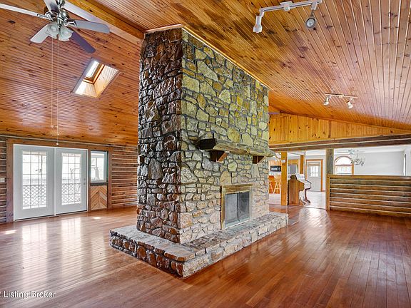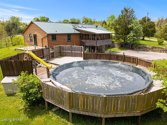 Gorgeous 3 bedroom log cabin home situated on nearly 5 acres of land with a workshop, barn, above ground pool, and unfinished basement! The land this home sits on features mature fruit trees (pear, apple, plum, fig, peach) as well as mature blackberry bushes and raised garden beds. When you enter the home you will notice the vaulted ceilings and rustic, cozy feel in the main living area that is perfect for entertaining. In the center of the room you will find a gorgeous double sided stone fireplace with a wood mantle on each side. The skylights in the vaulted ceiling allow tons of natural light to flow throughout the room. The open kitchen and dining area offers room for a formal dining table as well as a breakfast bar on the custom built island and 2nd eat-in dining area. Just off of th kitchen area there is a door leading to a covered deck that overlooks the back yard and pool area. The primary bedroom has an en suite half bath and the main bathroom on this level is oversized with a double vanity counter and shower/tub combo. All of the bedrooms are generously sized and they are located on the main floor. The partially finished walk-out basement offers tons of storage space or the opportunity to greatly expand the finished living space. There is a spacious finished full bath with a shower/tub combo for added convenience. In the back yard the pool surrounded by a deck will provide you with your own personal oasis to spend hot summer days. This home sits on 4.9 acres and features a mini log cabin playhouse with hardwood floors, a covered deck that overlooks the woods, and a storage barn/work shop that could have a variety of uses. The home is wired for a generator and the seller is willing to leave the current generator for the buyer. Schedule a private tour today and make this house your new home just in time for summer!