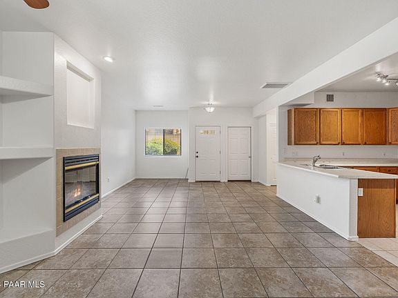 Fantastic move-in ready townhome in a great location in Prescott! 3 bedrooms, 2 bathrooms, 1,385 square feet. Spacious family room with cozy gas fireplace for those cool evenings to come. Efficient and functional kitchen features a large pantry, ample cabinetry and breakfast bar. Generously sized primary bedroom holds two closets and an ensuite bathroom. Relax and enjoy the fresh Prescott air from your upstairs balcony. Located within the gated Boulders Park Townhomes, close to shopping, restaurants and medical services, and downtown Prescott, this townhome makes a perfect primary residence or vacation getaway. HOA covers exterior maintenance including roof, flood insurance, landscaping, asphalt (roads), and gate. Rentals of less than 28 days not allowed. Schedule your showing today!