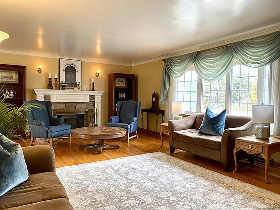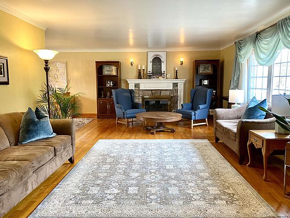 Step into the foyer and your eyes are drawn to the generous living room with stone fireplace which opens to the sunny and spacious dining room with access to the deck. The large multi-cabineted kitchen with eating area is one any chef would die for.