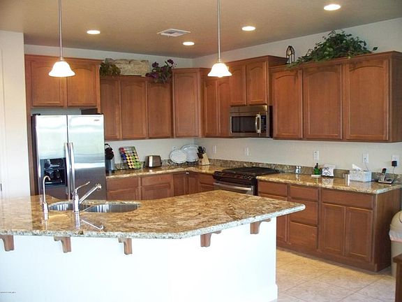 For Lease! Beautiful Views & Upgraded StoneRidge Ash Plan, 1802 SqFt, 3BD/2BA/2GAR, 18'' Tiled Foyer leads to Open Granite Kitchen w/Stacked Beechwood Cabinetry, Pantry, Lrg Dining Island, Upgraded S/S Appliances + Refrig. Great Room w/Panoramic Views, Lighted Ceiling Fan & Tiled Flooring. Master BD w/Bay Window, Exec Height Counter, Glass Shwr, Oval Tub, Dual Sinks & Walk In Closet. Inside Laundry Rm w/Front Load W & D + Folding Cabinet. Guest Bedrooms w/View Windows, Ceiling Fans, Pleated Shades & Carpet Flooring. Garage is extended 2' + Utility Side Door. Additional Upgrades include Water Softener, Security System, Reverse Osmosis, Pro-Landscaped Yards, Full Covered Rear Patio, BBQ Stub, Mirrored Closet Doors, Gas Stove, Recessed Lighting, Pendant Lighting, Double Gate, Backs to