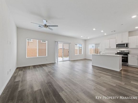 This beautifully designed two-story home features 3 bedrooms plus a loft, 2.5 bathrooms, and a 2-car garage. The modern kitchen shines with bright white shaker cabinets, quartz countertops, stainless steel appliances (stove, microwave, dishwasher, and refrigerator), and an undermount sink.