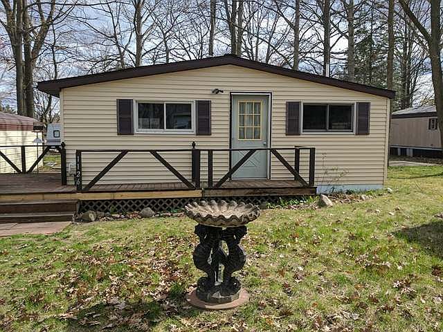 Great cottage or retirement home. This 702 sq ft One Bedroom, with large den area that could be used as a second bedroom is super clean and inviting. Home offers several newer: exterior doors, beautiful wood floors, nicely tiled bathroom floor and freshly painted. Large backyard with newer fence for the family pet is a bonus. Large deck to enjoy the outdoors. NG wall furnace efficiently heats the home. Connected to sewer system. Move in ready, call for your personal showing.