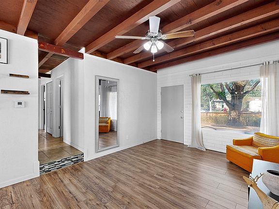 Move in ready!! The seller is offering a buyer credit of up to $5,000 with an acceptable offer, this could be used in anyway the buyer see's fit! Come have a look at this well cared for home that was fully updated in 2017 with refrigerated air & heater combo unit, metal roof, new kitchen, bathroom and windows! The current seller has added stainless steel appliances that are included. This 3 Bedroom 1 Bath home boasts a Mid-Century Modern feel inside with an expanded open floor plan and beam ceilings! Low maintenance front and backyard and much more, schedule a private showing today!