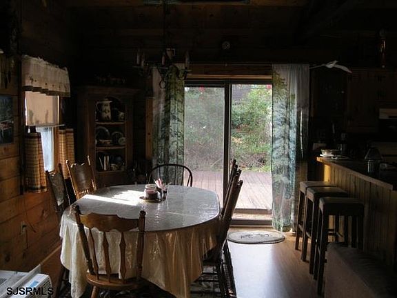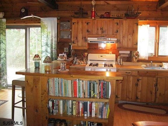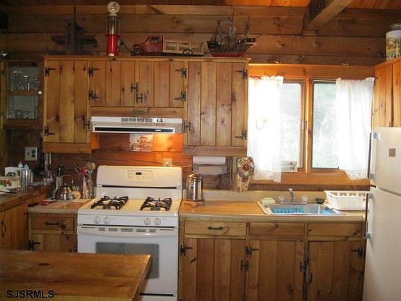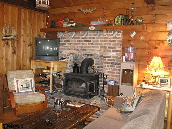 THE PERFECT GETAWAY! Tongue & groove log cabin in Green Bank with deeded 10' access on the Mullica! Ideal for swimming, kayaking or just relaxing and enjoying the beautiful sunset views over the water! Knotty pine walls & vaulted beamed ceiling in the living room, dining area & kitchen. Stone fireplace & woodstove in LR. Slider in the dining area out to a rear deck. 1-c garage/barn with a loft. Low taxes!! Enjoy this as a weekend getaway or live here fulltime!