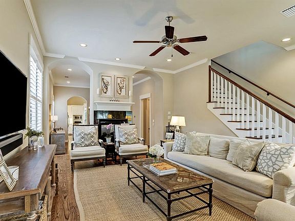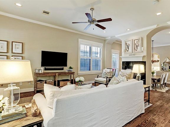 Incredible 3 bed 2.5 bath home with first floor living in The Heights Historic District! Owners have meticulously maintained this open floorplan w hardwood floors that were recently refinished throughout, plantation shutters, & high ceilings. Enter the home into the spacious living room that connects to the dining room via a double-sided fireplace. The kitchen was recently remodeled w marble counters, new backsplash, apron single-basin sink, white cabinetry, & SS appliances. Breakfast nook sits off of the kitchen area & flows into the backyard space w/ a gorgeous ivy wall, water feature, bistro lights, custom pavers for a dining area, & covered patio. Two car garage is on other side of the backyard w alley access. Travel upstairs to an oversized master retreat with a private balcony and spa-like bath w granite counters, double sinks, walk-in shower, whirlpool tub & large walk-in closet. Two secondary bedrooms that share a bathroom & the laundry room are down the hall. NO FLOODING!