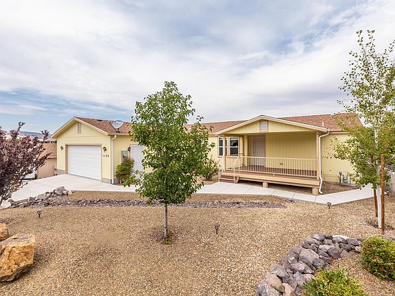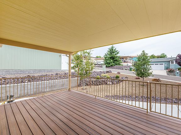 Remarkable 4 year old listing in this desirable and well kept manufactured community with no HOA. Last lot and structure built in subdivision. Has exterior masonite. Laminate flooring with look alike granite Formica counter tops. Electric stove and whirlpool frig. Formal dining with slider leading to amazing screened-in porch from living dining combo, in which to enjoy views of Granite Mtn & long views to the north. Beautiful open porch in front facing south with composite decking. Has over-sized double garage. List of features and extras put into the new build is available for print out.