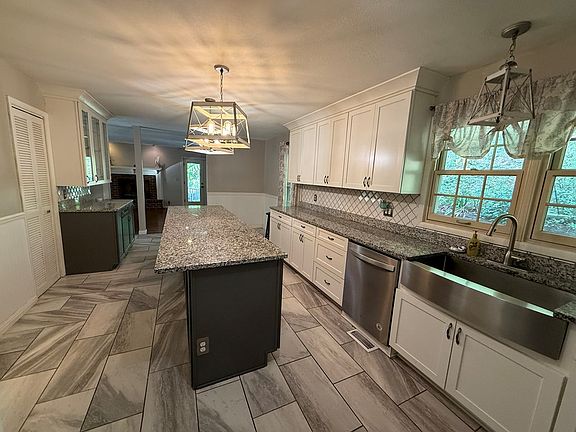 Step inside this charming 3-bedroom, 3-bath home and be immediately impressed by its inviting spaces and thoughtful updates. The heart of the home is the stunning kitchen, fully renovated in 2020. A true chef's dream, it features all stainless steel appliances that convey, a large island perfect for culinary adventures, custom granite countertops, abundant cabinetry, striking tile work, and even a pot filler for added convenience. The kitchen opens seamlessly into the living room, where oversized windows flood the space with natural light and a cozy gas log fireplace makes the perfect centerpiece. The main level also offers a welcoming foyer, a spacious dining room for gatherings, and a practical utility room for everyday living. Throughout the home you'll find hardwood flooring, with the bathrooms accented by tile for durability and style. Ceiling fans are thoughtfully placed to enhance comfort, and two heat pumps keep the home efficient year-round. Upstairs, all three bedrooms provide comfortable retreats. The master suite is a true standout with a generous walk-in closet, a private ensuite featuring a built-in makeup vanity, and a soaking tub perfect for relaxation. Outside, the home's cedar siding pairs beautifully with the stone wrap-around porch, creating striking curb appeal. The yard offers a budding garden oasis just waiting for someone to bring it back to life and enjoy its full potential. This home blends character and modern updates, making it a wonderful place to call your own.
