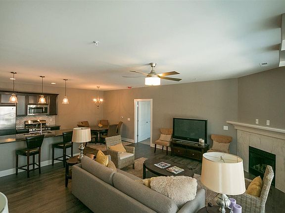 MAIN LEVEL TWO-BEDROOM CONDOMINIUM. Comfortable, upscale 1,250 sq-ft 2BR, 2BA condo w/ secure underground parking & bldg elevator. Feat 9' ceilings, fireplace, energy efficiency, granite kitchen counters, & large covered porch. Building amenities include an elevator, secure parking, secure storage, concrete porches, luxury finishes, and common areas including three exercise rooms.